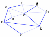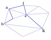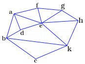 กราฟทรีที่แสดงประกอบด้วยเส้นกราฟที่เชื่อมโหนด b a f e k ซึ่งไม่มีการสร้างลูปภายใน