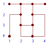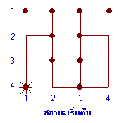 วิธีที่นิยมแทนโหนดของกราฟ และระยะทางระหว่างโหนดไปโหนดเป็นระยะทางตามทิศทางการเดินจริงในเขาวงกต เช่นจากโหนด(1,1) ไปยังโหนด(2,3) มีค่าเท่ากับ 6 โดยถือว่าจุดเริ่มต้นของการเริ่มเดินทางอยู่ที่โหนด(1,1) และโหนด(2,3) ไปยังโหนด (2,4) มีระยะทางเท่ากับ 2 ดังนั้นกราฟที่ปรากฎจะเป็นกราฟที่มีระยะทาง โดยสิ่งที่ต้องการคือกำหนดสถานะของการเริ่มเดินทางและสถานะเป้าหมายคือการสิ้นสุดการเดินทาง ซึ่งสามารถกำหนดสถานะได้ดังนี้