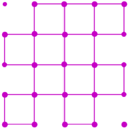 โดยไม่ยกดินสอและไม่ซ้ำรอยเดิม จะได้รูปสี่เหลี่ยมจัตุรัสขนาด 1 ตารางหน่วย มากที่สุดจำนวน 11 รูป ดังรูปด้านขวา