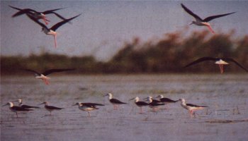 ชอบอยู่รวมกันเป็นฝูง เมืองไทยมีชนิดเดียวคือ นกตีนเทียน (Black Winged Stilts) |