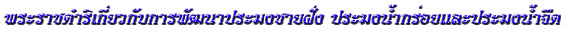 "ควรดำเนินการพัฒนาการประมงให้เหมาะสมกับลักษณะภูมิประเทศ โดยการพัฒนาแหล่งน้ำตามธรรมชาติ เช่น ห้วย หนอง ให้เป็นแหล่งขยายพันธ์ปลาและส่งเสริมให้ราษฎรสามารถใช้ประโยชน์จากแหล่งน้ำนั้นได้ ทั้งการประมงและการปลูกพืชผักบริเวณรอบ ๆ หนองน้ำด้วย เพราะการขุดบ่อขึ้นใหม่มักประสบปัญหาการขาดแคลนน้ำ หรือถ้าน้ำท่วมปลาก็จะหนีไปหมด"