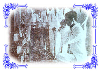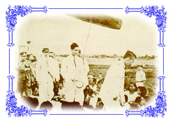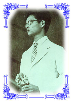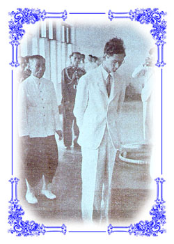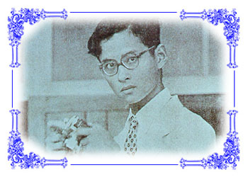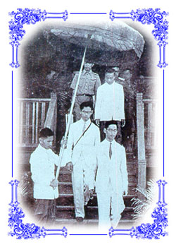 ทรง Taking a photograph of H.M. The King Rama VIII. At the left, Prince Dhani in traditional Siamese costume, Panung. |