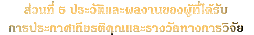 เมธีวิจัยอาวุโส สาขาเกษตรศาสตร์ ประจำปี 2539 จากสำนักงานกองทุนสนับสนุนการวิจัย