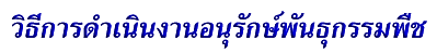 กรมวิชาการเกษตร รับที่จะปลูก และรักษาพันธุกรรมพืชที่อยู่ในข่ายการดำเนินงานของกรมวิชาการเกษตร ในศูนย์วิจัยและสถานีทดลองต่าง ๆ