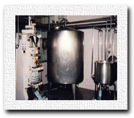 | เมื่อผ่านเครื่องโฮโมจิไนส์เซอร์แล้วจะถูกส่ง ไปยังถังเก็บ ซึ่งเป็นถังฉนวนกันความร้อน