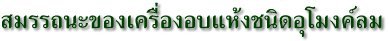 ๔. สามารถใช้อบผลิตผลทางการเกษตรต่าง ๆ ได้เช่น กล้วย เห็ด พริก กาแฟ และ สมุนไพร เป็นต้น โดยสามารถอบได้ครั้งละ ๒๕๐-๕๐๐ กก. ทั้งนี้ขึ้นอยู่กับชนิดของผลิตผลเช่น กรณีของ กล้วยสามารถที่จะอบได้ครั้งละ ๒๕๐ กก. หรือประมาณ ๓๐๐ หวี