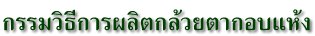 นำไปวางเรียงบนพื้นที่ตากของเครื่องอบแห้งใช้อบทั้งวันจนกระทั่งถึงตอนเย็น จึงเก็บกล้วยจากพื้นที่ที่ตากกล้วย