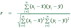 เมื่อ และ เป็นค่าเฉลี่ยของข้อมูล x และ y ตามลำดับ