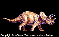 ไทรเซอราทอปส์ (tricratops) มีฉายาว่า ยักษ์สามเขา ตัวไม่โตนัก ยาวประมาณ 20 ฟุต สูง 10 ฟุต มีขนาดใหญ่กว่าช้างเล็กน้อย ที่ต้นคอมีเกราะใหญ่แผ่คลุมคอและไหล่