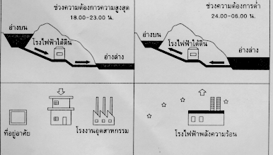 พลังงานไฟฟ้า จึงมีการพัฒนาโรงไฟฟ้าพลังน้ำระบบใหม่ขึ้นเพื่อไม่ให้เกิดการสูญเสียน้ำ เรียก ระบบนี้ว่า โรงไฟฟ้าพลังน้ำแบบสูบกลับ ซึ่งจะประกอบด้วยอ่างเก็บน้ำบนภูเขา โรงไฟฟ้า ใต้ดิน อุโมงค์ส่งน้ำใต้ดิน ลานไกไฟฟ้า และสายส่งไฟฟ้า จะมีกำลังไฟฟ้าเหลืออยู่จำนวนหนึ่งซึ่งไม่ได้ใช้งาน โรงไฟฟ้าพลังน้ำแบบสูบกลับก็จะนำพลังงาน ไฟฟ้าส่วนเกินนี้มาสูบน้ำขึ้นไปเก็บในอ่างเก็บน้ำบนภูเขา และเมื่อมีความต้องการใช้ไฟฟ้าสูง ก็จะปล่อยน้ำจากอ่างเก็บน้ำบนภูเขาลงมายังอ่างเก็บน้ำด้านล่าง น้ำจะผ่านกังหัน ทำให้เครื่อง กำเนิดไฟฟ้าซึ่งต่ออยู่กับกังหันหมุนผลิตพลังงานไฟฟ้าออกมาใช้งาน ดังแสดงในรูป รูปที่ 11.2